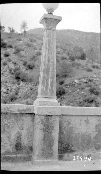 Big Creek Powerhouse #3 - PH #3 - Cracking and carbonate deposit on lamp post.