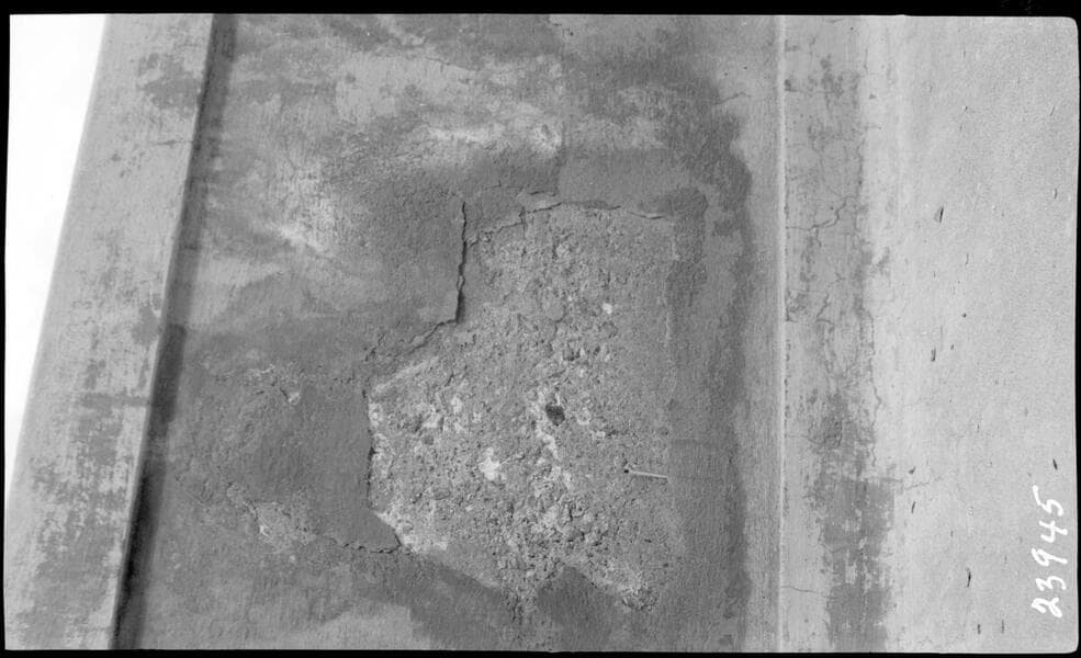 Big Creek, Florence Lake Dam - Intrados Arch #26 - Close-up of surface showing Sodium Carbonate efflorescence, Calcium Carbonate deposits, and areas with spalling concrete.