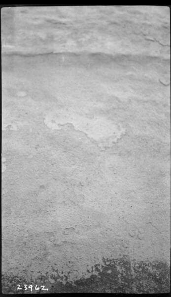 Big Creek, Huntington Lake Dams - Dam #1 - Scaling of 1939 gunite coat near station 6+00, dark area covered with scaling compound.