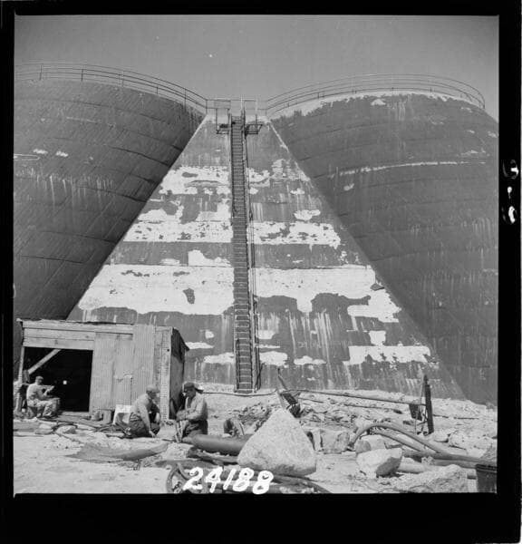 Big Creek, Florence Lake Dam - Angle buttress #49 and Mixer Plant.
