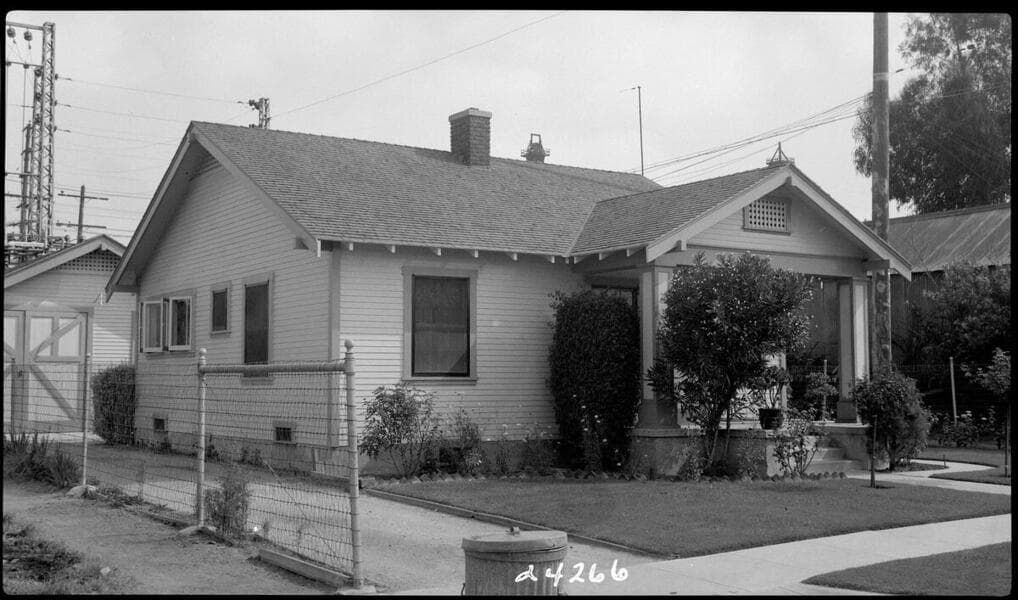 Los Cerritos Substation - Operator's cottage [showing switchrack behind garage]