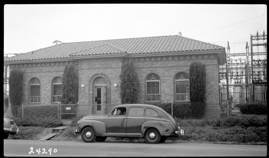 Santa Fe Springs Substation - General view from northwest [showing station building and Racks].