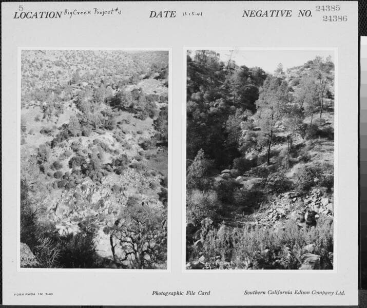 Big Creek Powerhouse #4 - North fork. [site locations marked on photocard].