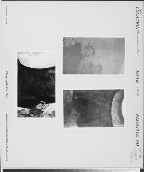 Big Creek, Florence Lake Dam - Testing coatings for concrete - Arch #7 Insulmastic, Arch #8 Asbestile, & Arch #9 Carbozite.