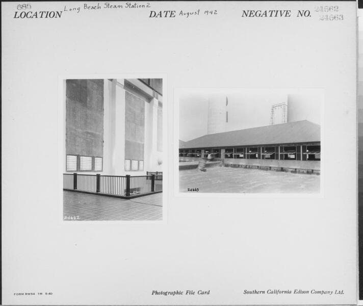 Long Beach Steam Station, Plant #2 - Plant #3 Skylight over Turbine Room, east end. [Plus additional shot #24665 (window at east end of Plant #3 Boiler Room) on same photocard].