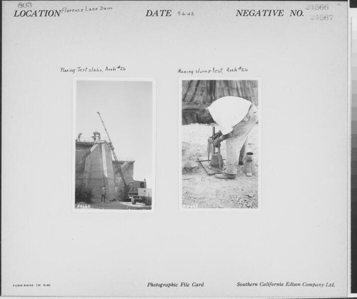Big Creek, Florence Lake Dam - Making slump test, Arch #26.