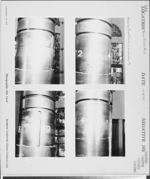 Kern River No. 3 - Showing conditions of Generator #1 [plus additional similar shot: (#24688) on same photocard.].