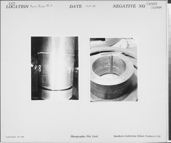 Kern River No. 3 - Showing conditions of Generator #1 [plus three additional similar shots: (#24684, #24685, & #24686) on same photocard.].