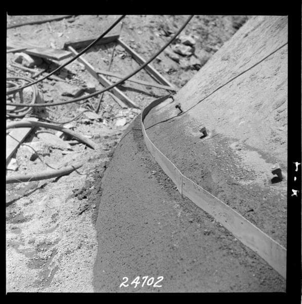 Big Creek, Florence Lake Dam - View of open seam on Arch #36 at elevation 7308 after chipping out and ready for sealing with stiff grout.