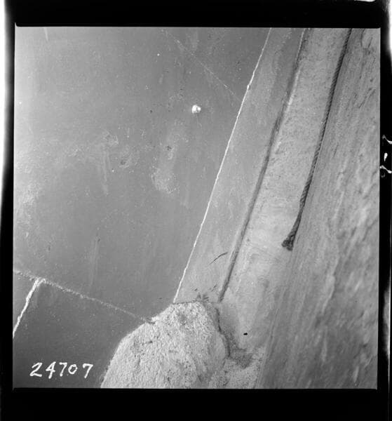 Big Creek, Florence Lake Dam - Close-up of groin between Arch 13 & 14, showing 24" sealing plate imbedded in gunite filler.