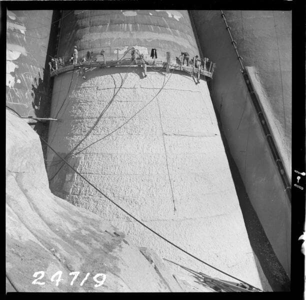Big Creek, Florence Lake Dam - First guniting above elevation 7235 on Arch 52.