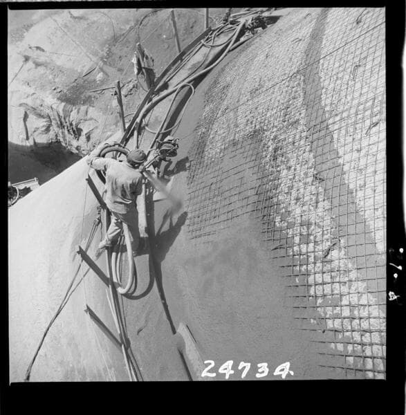 Big Creek, Florence Lake Dam - First guniting above elevation 7235 on Arch 52.