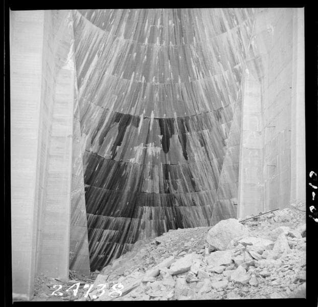 Big Creek, Florence Lake Dam - Day's Work Joint Repair April 1940. Arch #51 after guniting.