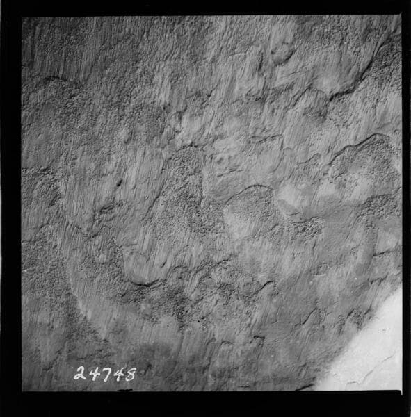 Big Creek, Florence Lake Dam - Close-up of a cluster of blisters on the J-M Asbestile waterproofing on Arch 8. Waterproofing was applied May 1940.