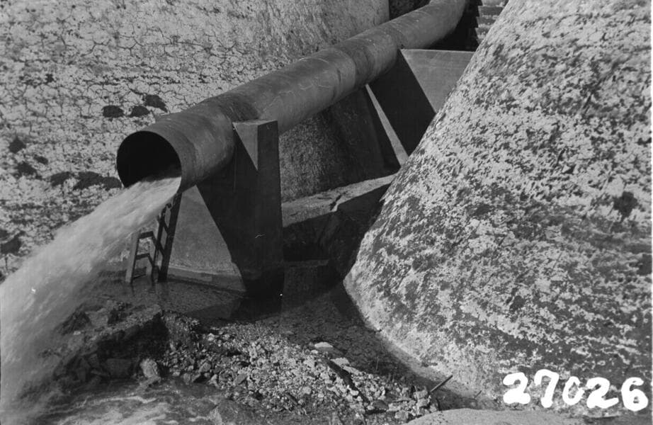 Big Creek, Florence Lake Dam - Outlet of Hooper Creek Pipeline at Florence Lake Dam.
