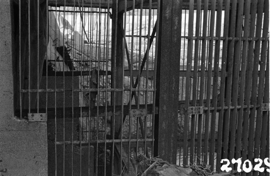 Big Creek, Florence Lake Dam - Record photograph showing intake trash rack and concrete head wall - 8" fish pipe extension upstream from Arch 53.