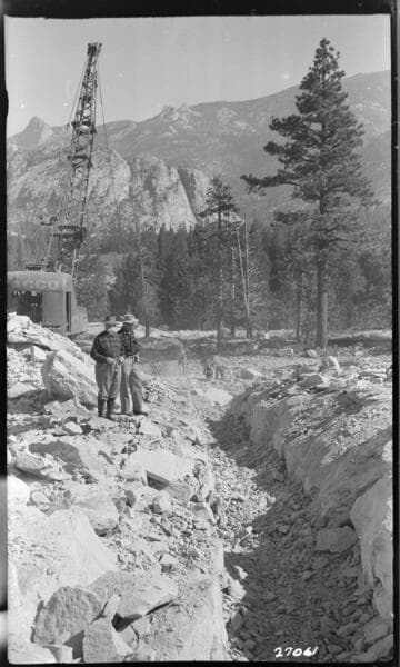 Big Creek General - Hooper Creek - Hooper Creek Pipeline rock trench from top of Florence Lake Dam.