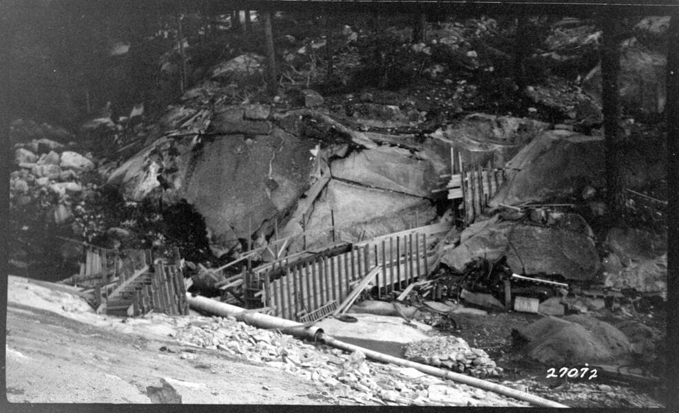 Big Creek General - Hooper Creek - Looking down North abutment, Hooper Creek Dam.
