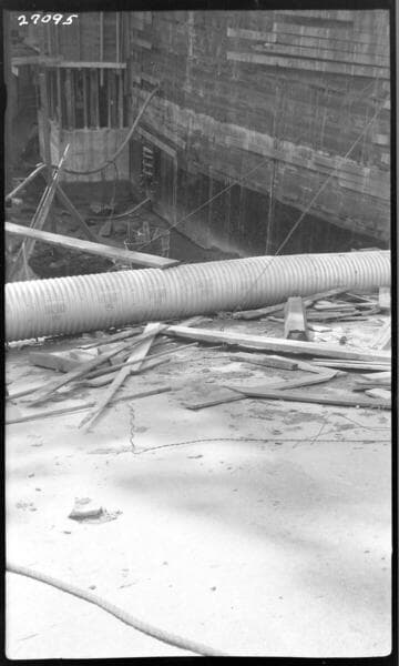Big Creek, Huntington Lake Dams - Dam 2 Upstream face - View showing guniting around Shaver Intake. Mesh in place but not gunited to left of trash rack.