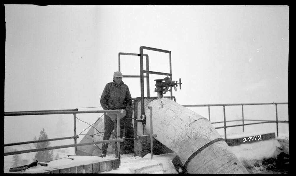 Big Creek, Florence Lake Dam - Hooper - Slide 34" pipeline from top of dam.