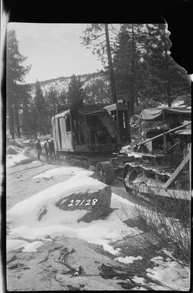 Big Creek, Florence Lake Dam - Macco bulldozer clearing road on Kaiser Pass.
