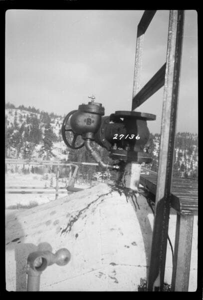 Big Creek, Florence Lake Dam - Close-up 4" valve and 3/4" Bailey Automatic Vent Trap on Hooper