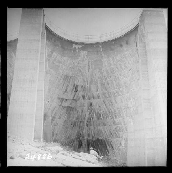 Big Creek, Florence Lake Dam - Photo of intrados of Arch 13 taken during inspection showing distribution of damp areas. Lake elevation 7326.1.