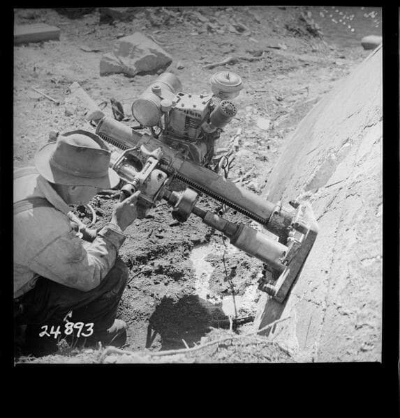 Big Creek, Florence Lake Dam - Drilling core U-7-5 on extrados of Arch #7