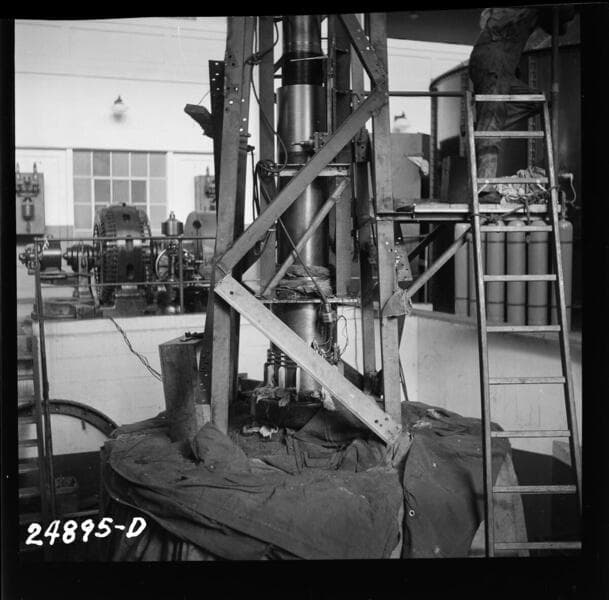 Big Creek Powerhouse #3 - Unit #4 - Generator shaft transom collar. (lifting rig for unit rotor)