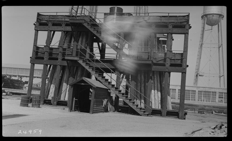 General Store, Pole Yard - Alhambra Pole Yard viewed from tower - Poles and Oil Tanks for pole treating plant.