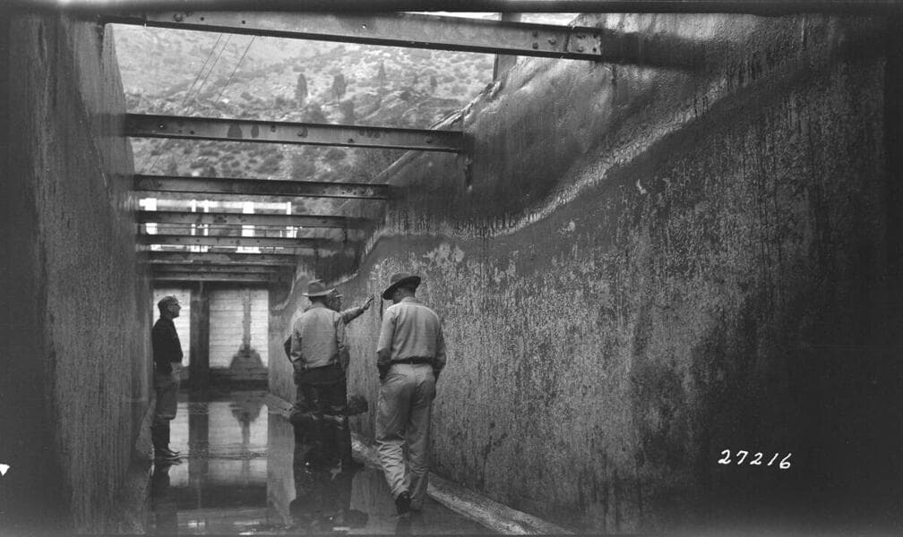 Kern River No. 3 - Intake. Two coats of Arco Coal Tar paint at tunnel intake.