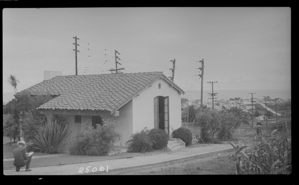 Substations Misc. - Multi-image shot of 6 typical substation styles : Manhattan Beach "cottage", Huntington Park "apartment", Ramona "bungalow", Santa Fe Springs "Library", San Vincente "business", & Marine "Library"