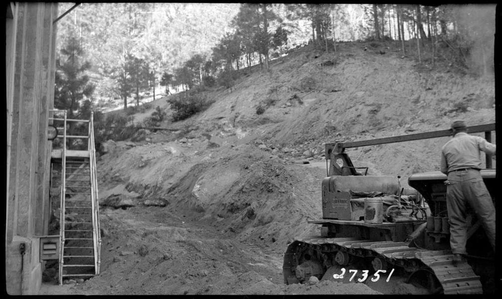 Big Creek #1 - Excavating channel at west end of powerhouse.