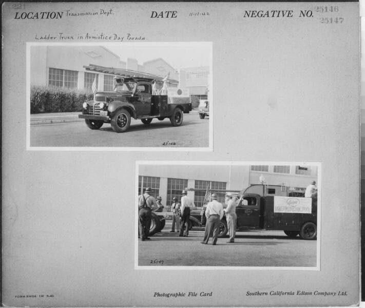 Miscellaneous Transmission - Mobile Radio Station in Armistice Day Parade [plus additional shot of line truck in parade (#25149) on same photocard].