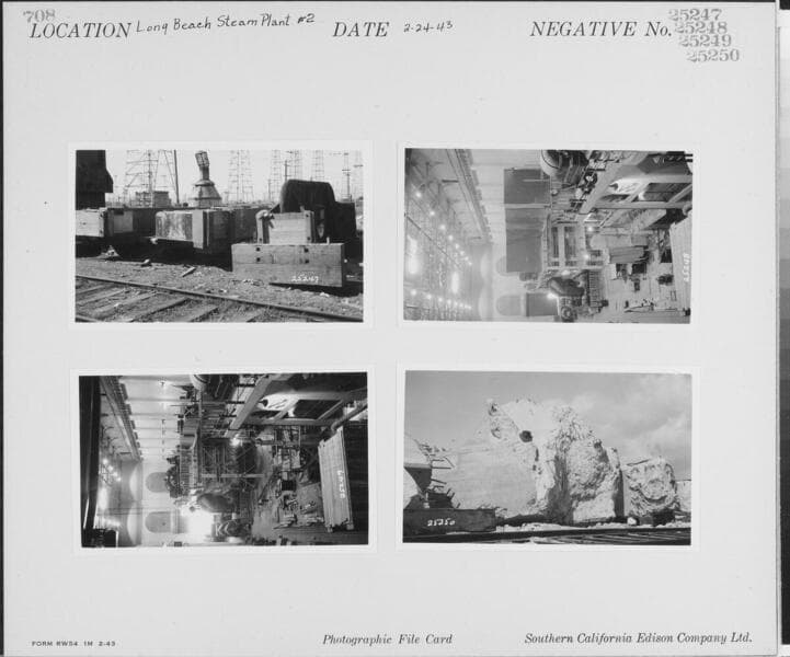 Long Beach Steam Station, Plant #2 - Unit #8 Condenser north end. [Plus three additional shots (#24902: dismantling Unit 8, #24903: Unit 8 generator air coolers, & #24904: Unit 8 auxiliary generator) on same photocard].