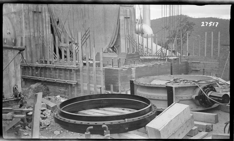 Big Creek Powerhouse #3 - PH #3 - 4th unit assembly scroll case and butterfly valve set.