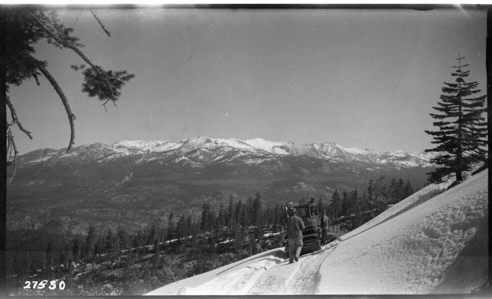 Big Creek, Florence Lake Dam - Sno-Motor near top "The Ladder" near Tennessee Point, looking toward the Silver Divide.