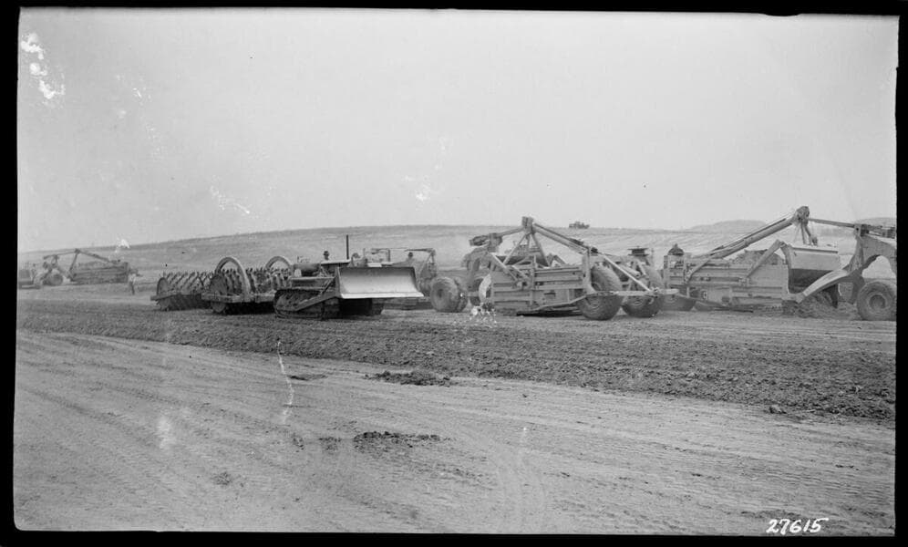 Big Creek, Vermilion Dam - Placing compacted fill in former Mono Channel.