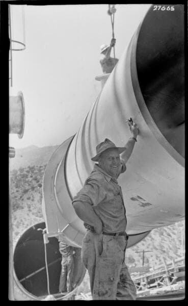 Big Creek Powerhouse #3 - PH #3 - placing next to last section of pipe for 4th unit penstock.