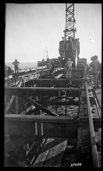 Redondo Beach Steam Station - Plant #1 - Gantry for handling 10 foot diameter cooling water pipes.