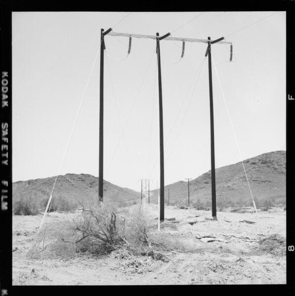 Eagle Mountain Line construction to Kaiser's Eagle Mountain Mine. - Wood H-Frame transmission line corridor. - suspension towers