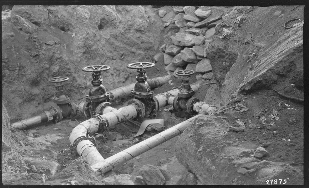 Big Creek #1 - Water system - typical victaulic pipe joint and valve.