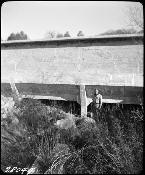 Borel Powerhouse - Borel Conduit - Wing wall at north end of School House Cut Flume. Junction of wall and flume is approximately station 368+14.5
