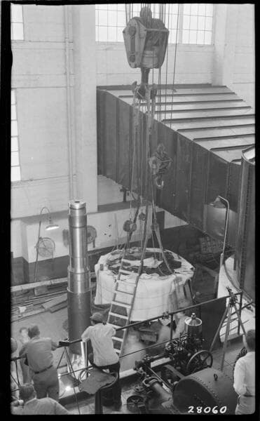 Big Creek Powerhouse #3 - PH #3 - 4th Unit, first attempt to place rotor on shaft.