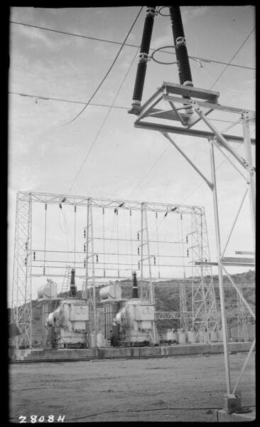 Stadium Substation - 220-66 kV (old style) Transformer being untanked. - Bechtel.