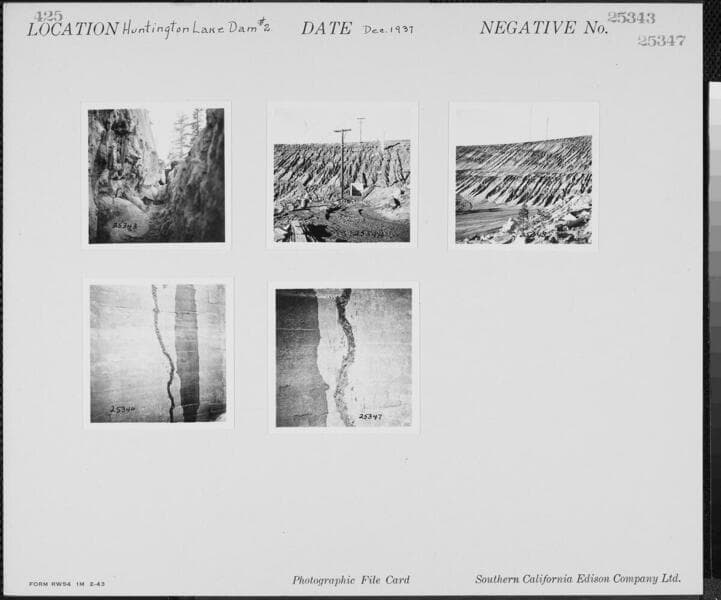 Big Creek, Huntington Lake Dams - View of typical vertical crack.