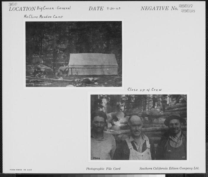 Big Creek General - McClure Meadow Camp - close-up of crew (Popeney, McMillan, and Bush).