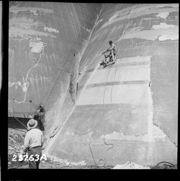Big Creek, Florence Lake Dam - Removal of old gunite on lower portion of Arch #20. [variant of 02-25763a].
