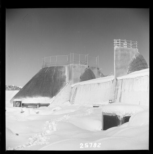 Big Creek, Florence Lake Dam - Two views - Spillway concrete repair. [variant of 02-25779a].