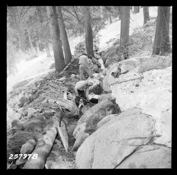 Big Creek General - Crater Creek Diversion - Progress excavation along ditch. [variant of 25798a].
